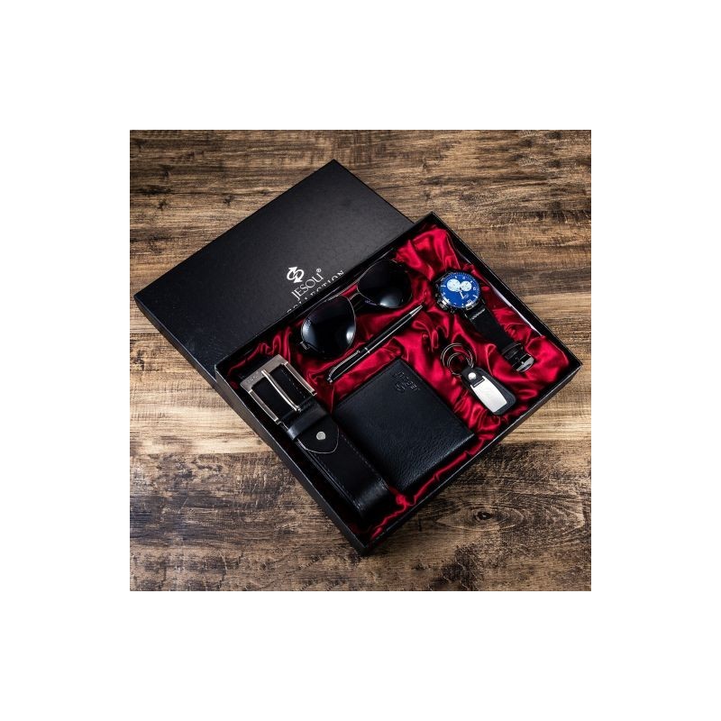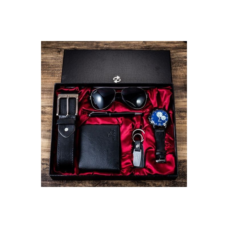 Gift Business Luxury Company Mens Set 6 in 1 Watch Glasses Pen Keychain Belt Purse Welcome Holiday Birthday