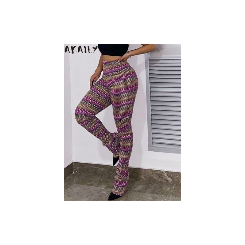 Akaily őszi színű kötött nadrágok nőknek utcai ruházat, 2022 magas derekú vékony halmozott nadrág női rózsaszín, alkalmi hosszú nadrág
