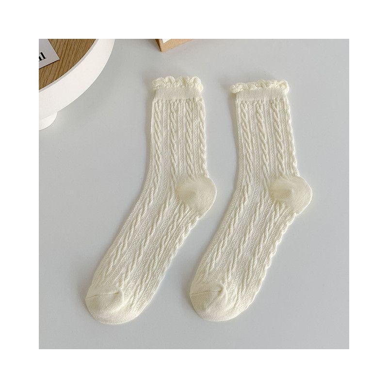 Solid Color Japanese Fashion Middle Tube Socks Women Ruffle Socks Kawaii Lolita Literary Retro Vintage Socks Spring and Autumn