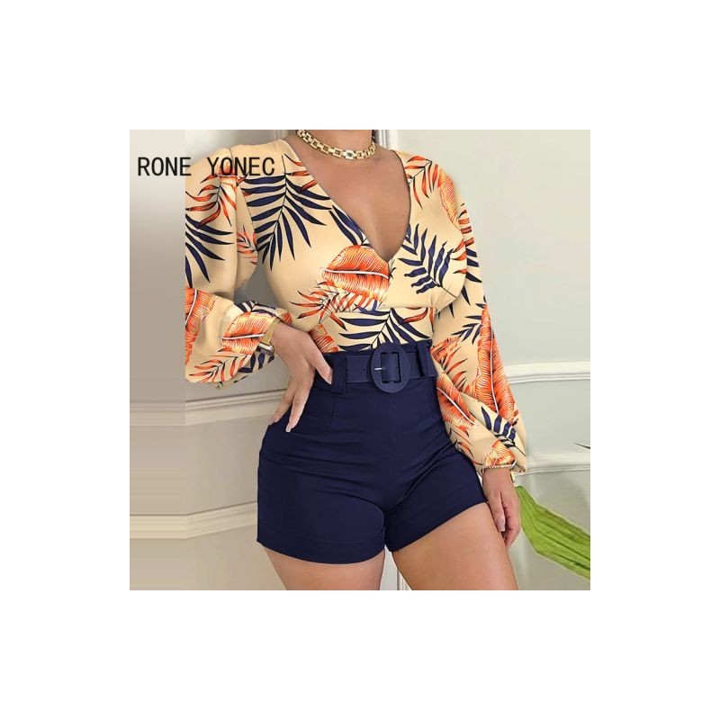 Női Colorblock Lantern ujjú felső és sima rövidnadrág szett nyaralóruha