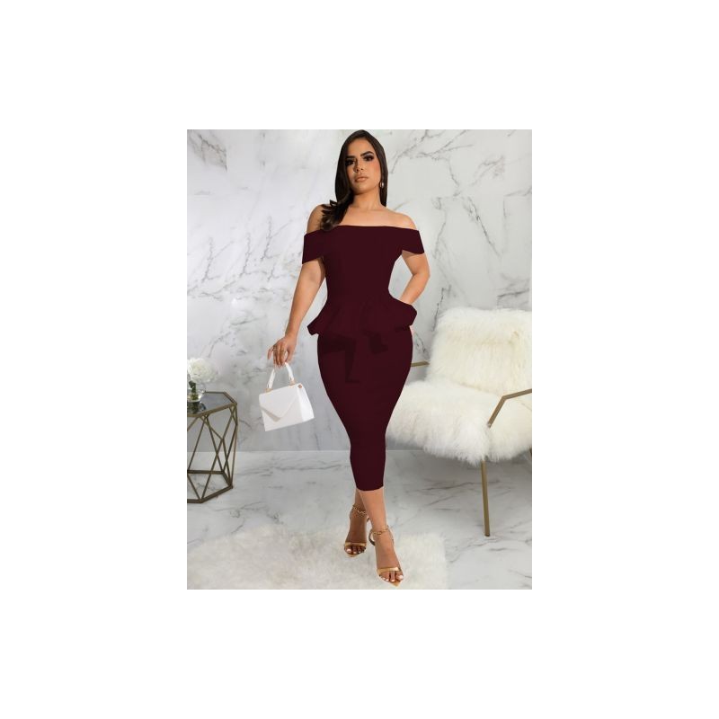 Gorgeous Solid Cascading Ruffles Pencil Dress Summer Clothes for Women Elegant Off The Shoulder Backless Split Bodycon Vestidos