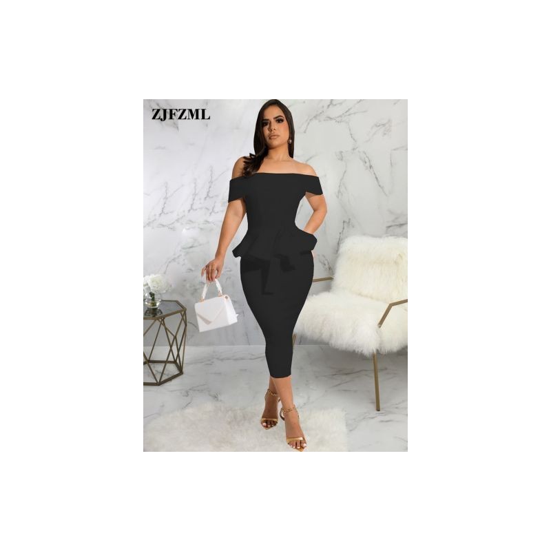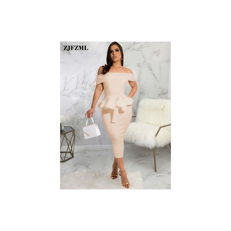 Gyönyörű tömör, lépcsőzetes fodros ceruza ruha nyári női ruhák elegáns váll nélkül, osztott Bodycon Vestidos