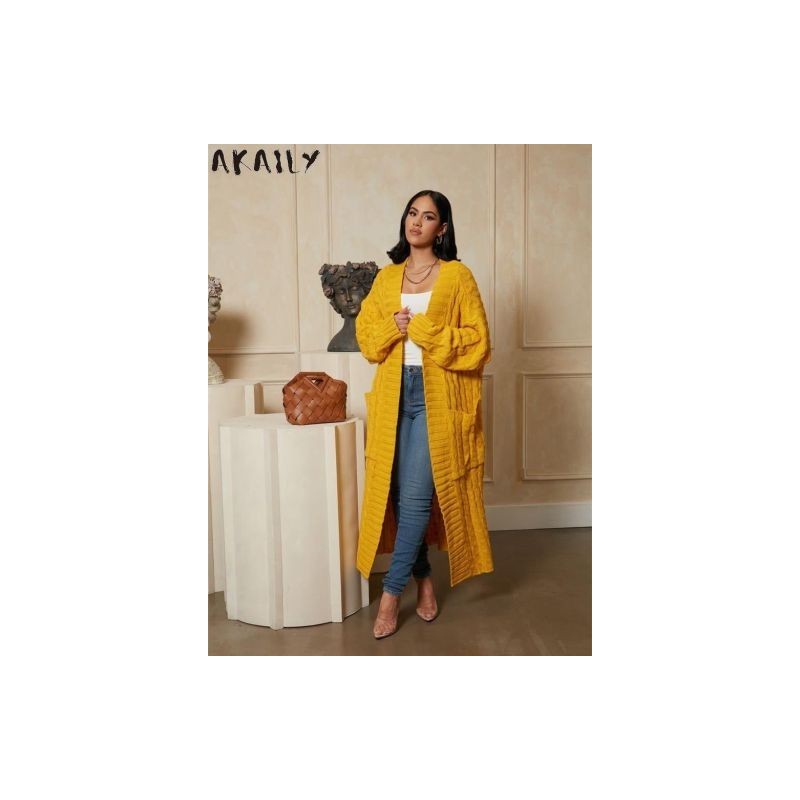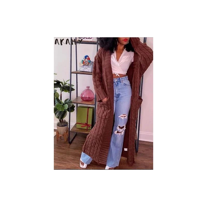 Akaily Fall Black Knitted Sweater For Women Fashion 2022 Loose Brown Long Sleeve Y2k Tops Ladies Casual Knit Long Cardigans