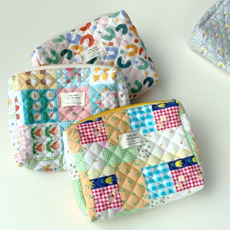 Multifunctional Quilted Cosmetic Pouch Korean Floral Makeup Bag Large Capacity Travel Toiletry Bags Female Zipper Beauty Case