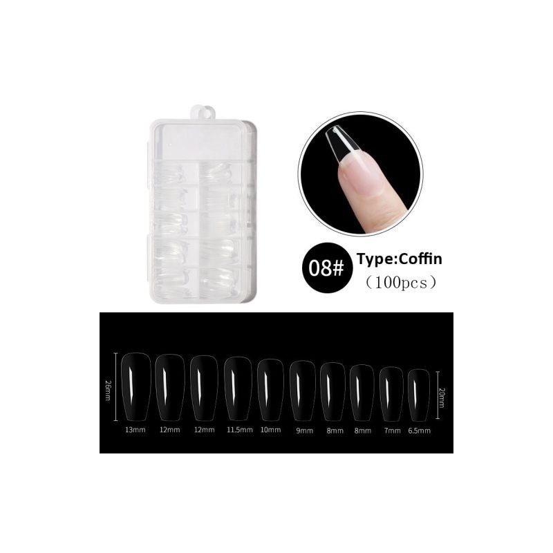 100pcs False Nail Tips Natural Transparent Coffin Coverage False Nail Full Sticker For Nails Manicures Quick Building Mold Tools