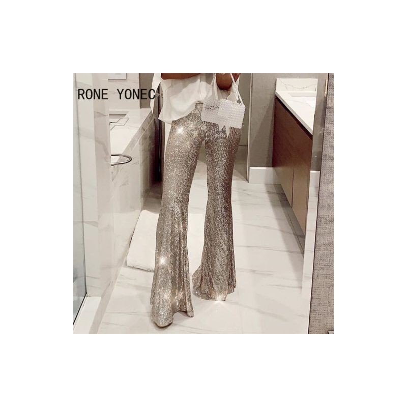 Női elegáns flitter magas elasztikus derekú csengő alsó nadrág
