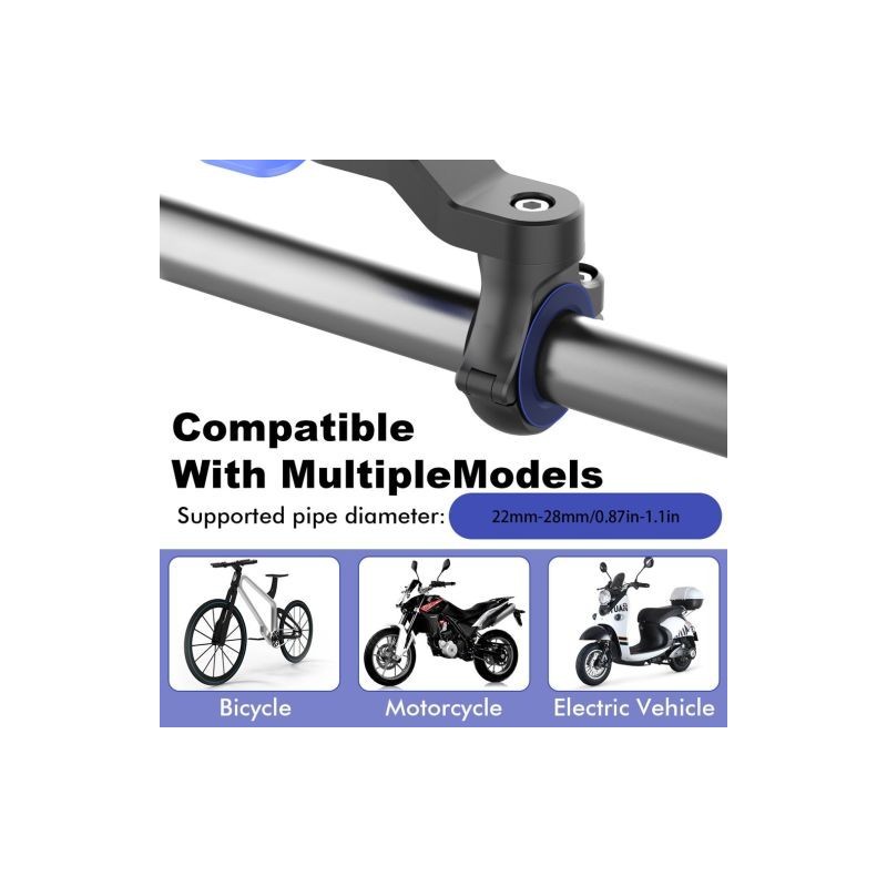 The mobile phone holder can be rotated 360 degrees, adapting to your various needs and easy to install. This phone holder can provide you with a safety lock design so it can be stably attached to the handlebars of your bike while riding.