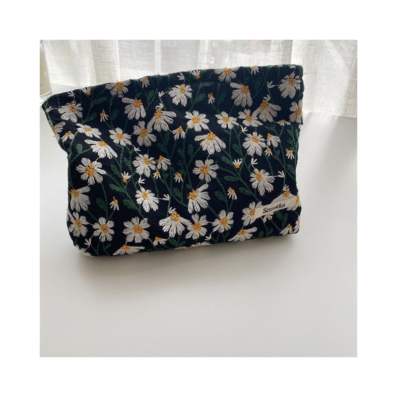1PCS Small Fresh Makeup Bag Embroidery Flower Cosmetic Bag Female Literature Art Simple Pencil Case Large Capacity Storage Bags