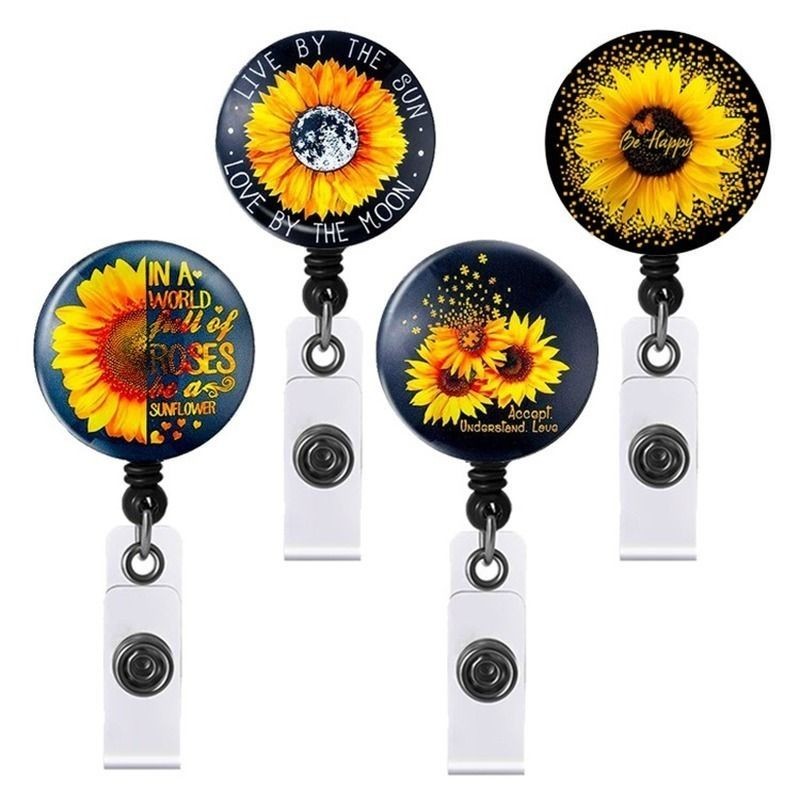 Retractable Sunflower Nurse ID Chest Card Clip Employees Name Badge Reel Workers Staff Work Card Holder Bag Accessories Lanyard