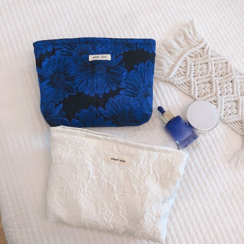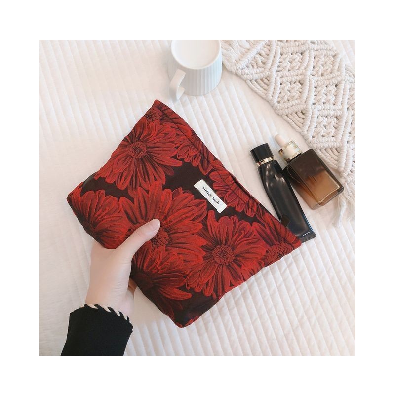 French Embossed Flowers Travel Cosmetic Storage Bag Wallet Cute Women Makeup Kits Handbags Phone Pencil Case Organizer Pouch Bag