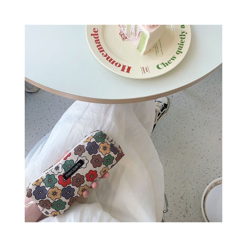 Kawaii Women Makeup Handbags Organizer Wallet Pouch Pencil Case Bag Corduroy Floral Travel Cosmetic Lipstick Purse Storage Bag