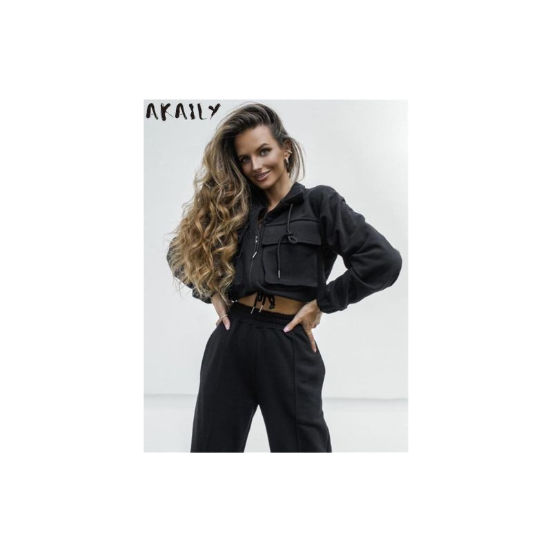 Akaily White Cargo 2 kétrészes szettek, női őszi alkalmi ruhák, 2022 hosszú ujjú felsők, kabátok és nadrágok, női utcai ruházat
