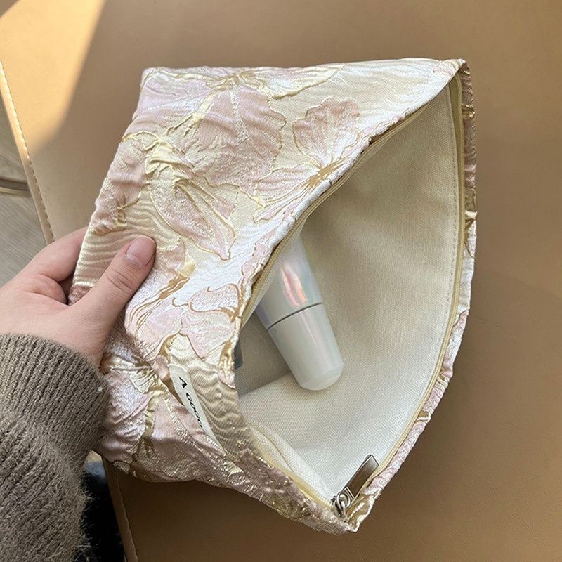 2023 New Makeup Brush Storage Pouch Organizer Jacquard Fabric Makeup Bag Floral Zipper Cosmetic Pouch Women Large Toiletry Bag