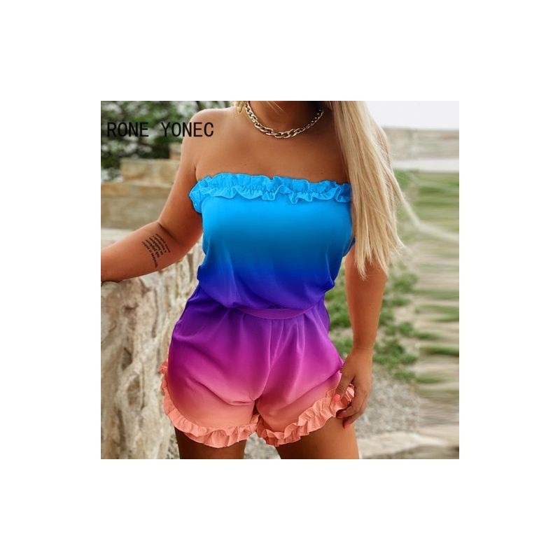 Women Chic Strapless Sleeveless Edible Tree Fungus Gradient Color with Belt Rompers