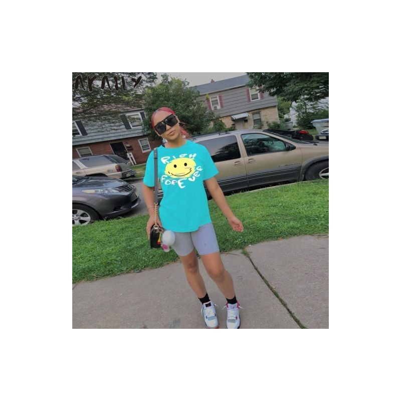 AKAILY Női rövid ujjú Bodycon fekete tömör póló 2021 női tavaszi póló felsők nyomtatási nyakú Streetwear póló női új
