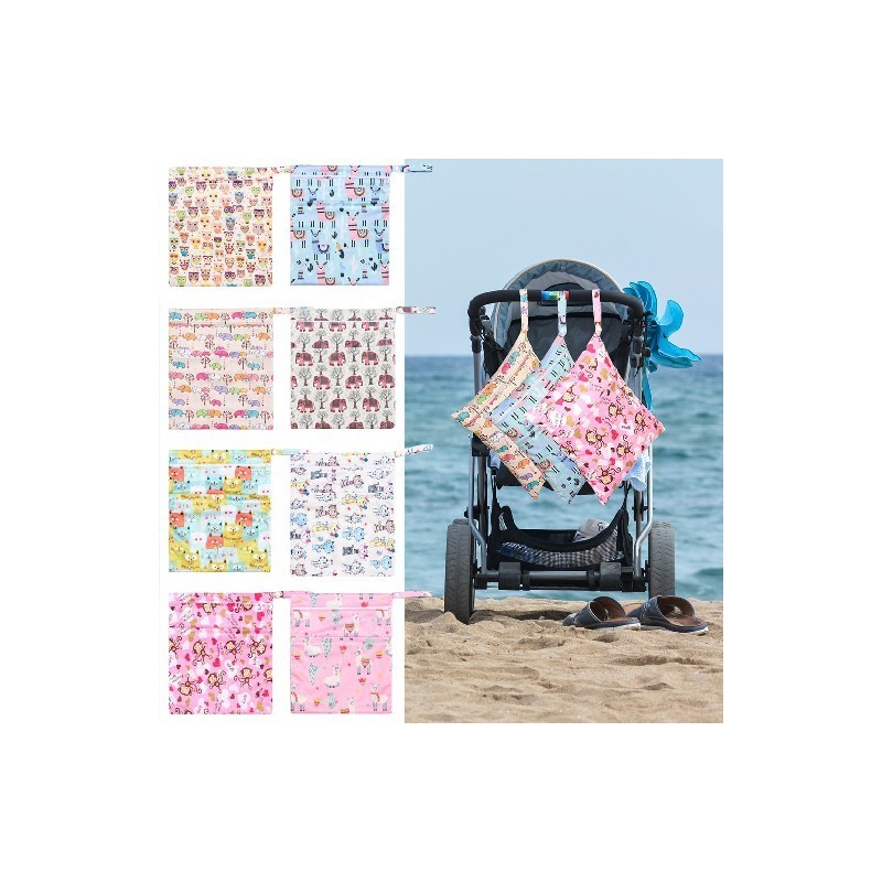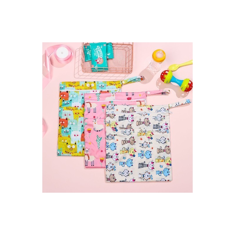 Double Zipper Printed Diaper Bag For Baby Outing Wet Bag Nappy Bag Waterproof 30x36cm