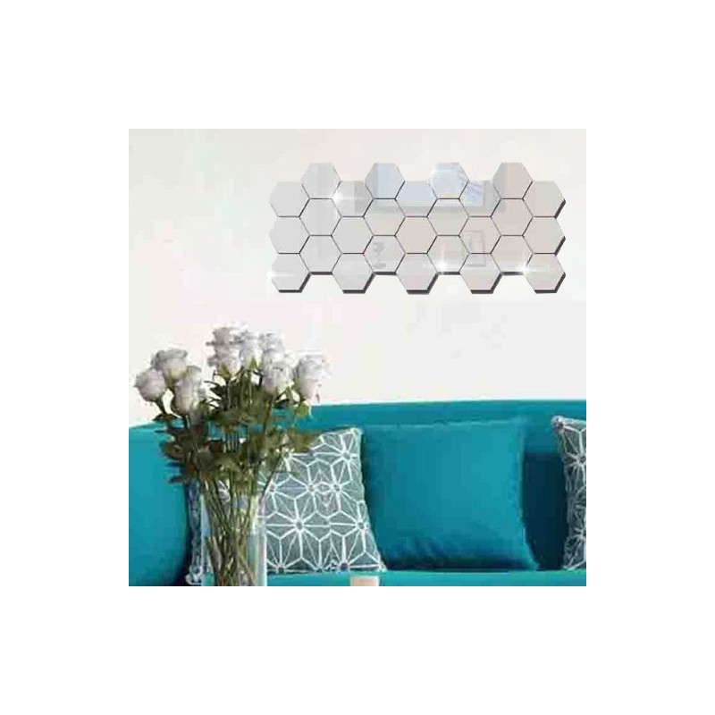 12PCS Hexagon Removable Waterproof Self-adhesive Mirror Stickers Home Bathroom Kitchen Wall Stickers Kitchen Decoration