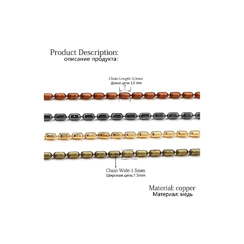 2M/lot 1.5mm Silver Gold Bulk Copper Cylindrical Bead Chain Bamboo Chains For DIY Necklace Bracelet Jewellery Making Supplies