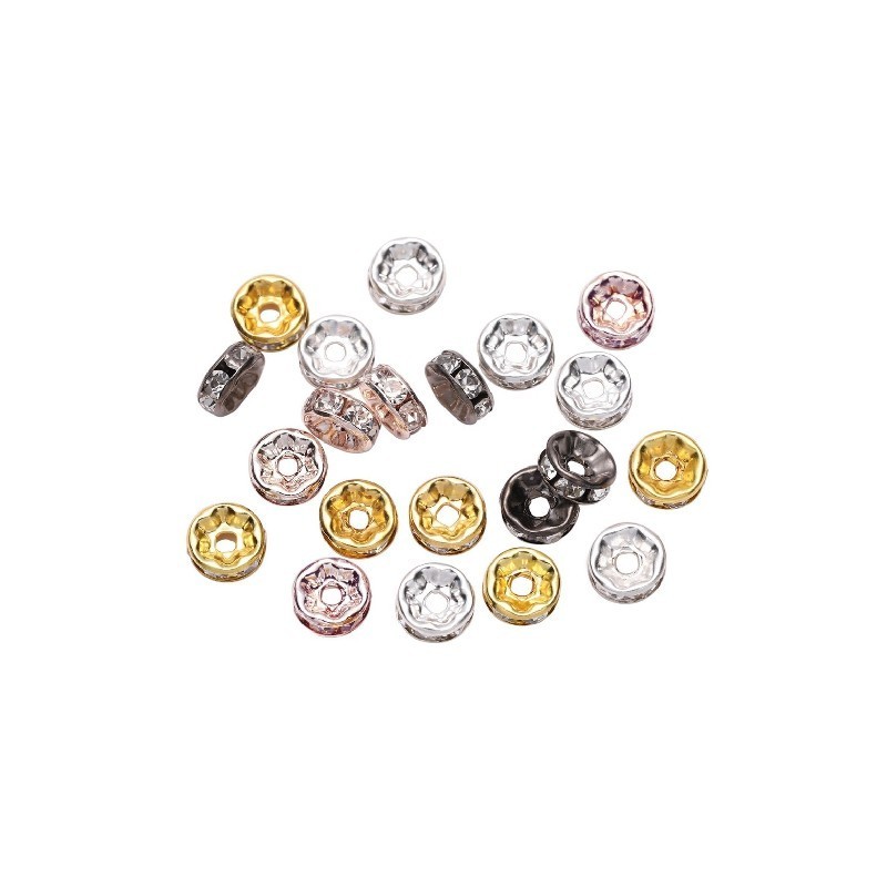 50pcs/lot 4 6 8 10mm Gold Color Rhinestone Rondelles Crystal Bead Loose Spacer Beads for DIY Jewellery Making Accessories Supplie