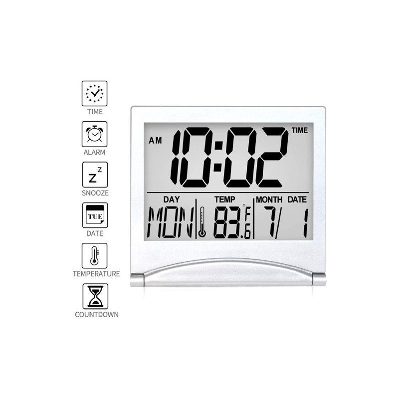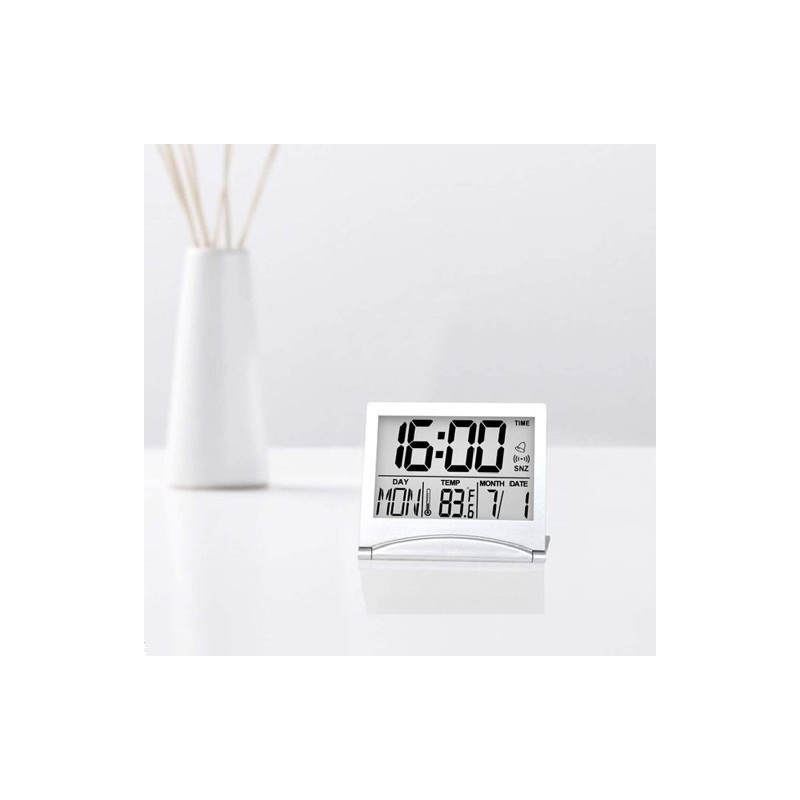 Összecsukható LCD digitális ébresztőóra asztali asztali időjárás állomás asztali hőmérséklet utazási elektronikus mini óra
