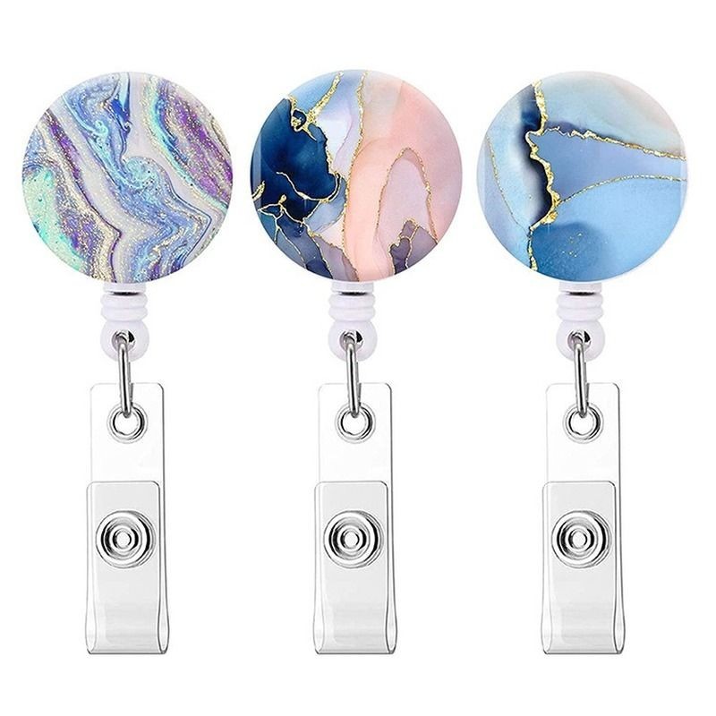 1PCS Gilding Marblizing Retractable Badge Reel for Female Nurse Work Card Clip ID Name Badge Holder Lanyard Accessories Reels