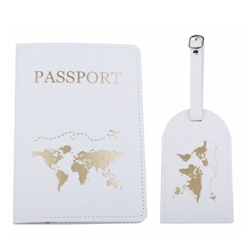 2PCS/set Travel Passport Cover PU Leather Luggage Name Tag Protective Case Passport Card Holder Wallet