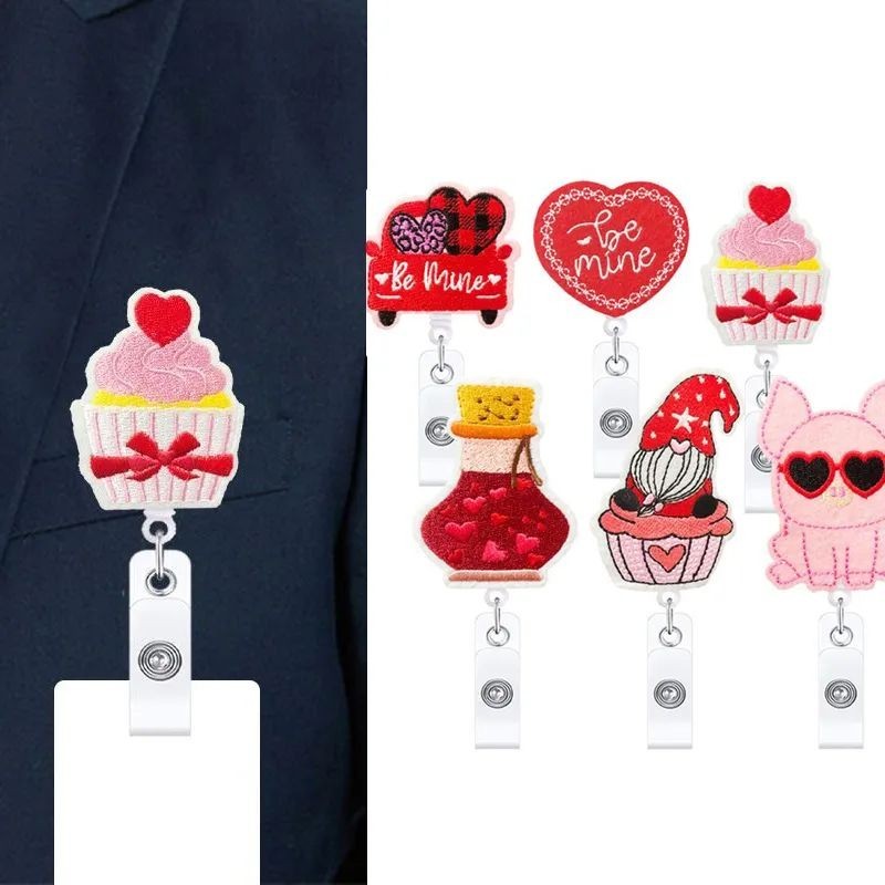 Valentine's Day Cartoon Animal Heart Felt Embroidery Badge Reel for Female Nurse Work Card Cover Case Badge Accessories Reels