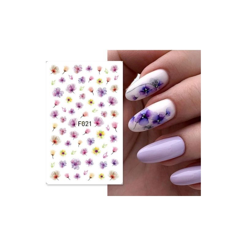 3D Spring Watercolor Nail Sticker Design Purple Flower Leaf Butterfly Slider Nail Art Decoration Floral Polish Decals Manicure