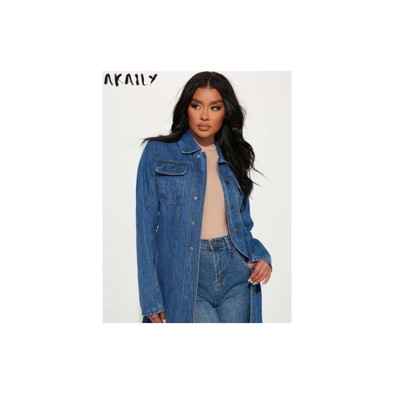 Akaily őszi farmer hosszú kardigánok női divat 2022 hosszú ujjú bandage farmer dzsekik női laza alkalmi hosszú trencskabát