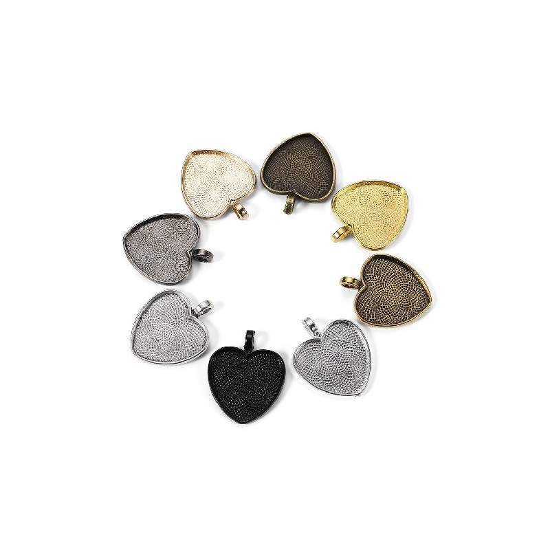 10pcs/lot 25mm Heart-Shaped Pendant Cabochon Base Setting Cameo Findings For DIY Jewellery Making Supplies
