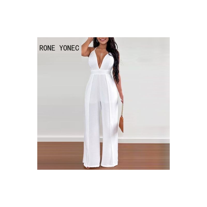 2023, női, masszív, szexi kötőfék, Criss Cross, hát nélküli, mély V nyakú, szexi egyenes lábú jumpsuit