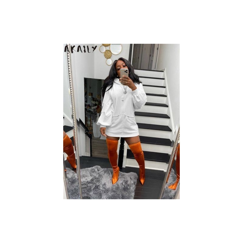 Akaily Fall White Zip Up Hoodies For Women 2022 Streetwear Hooded Long Sleeve Black Tops Female Pockets Casual Sweatshirts