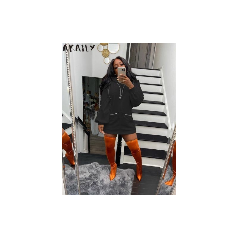 Akaily őszi fehér, cipzáras kapucnis pulóverek nőknek 2022 Utcai viselet kapucnis hosszú ujjú fekete felsők Női zsebek Alkalmi pulóverek