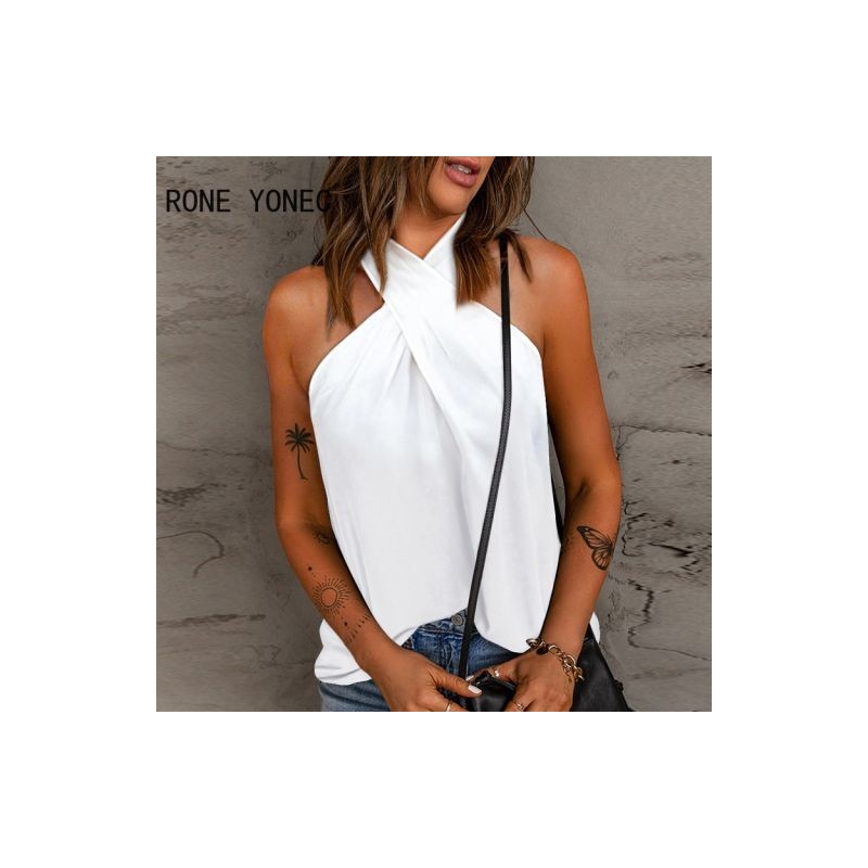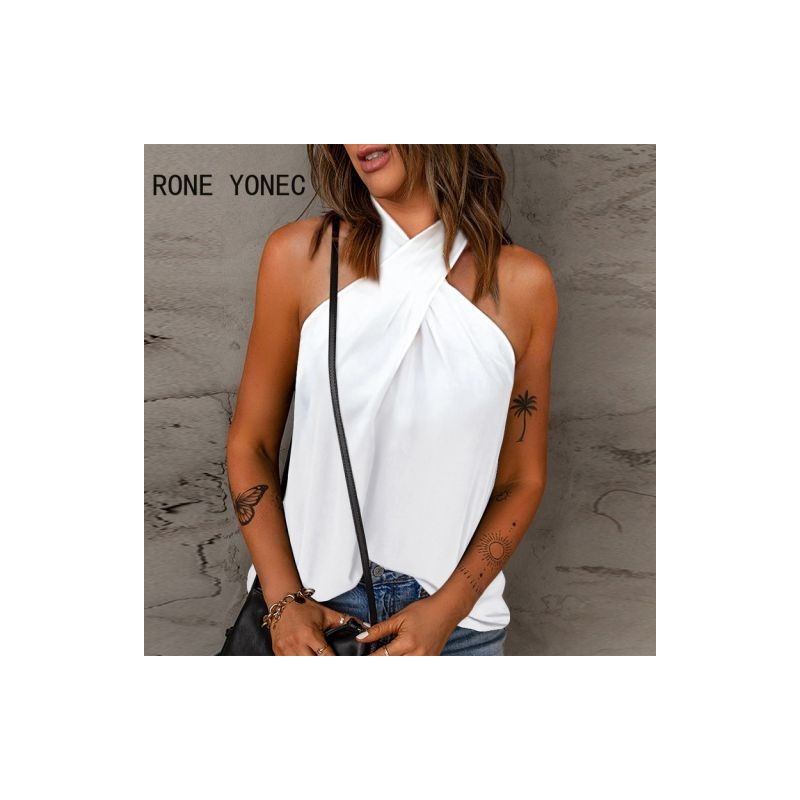 Elegáns, szexi, masszív kötőfékű női Criss Cross ujjatlan nyári Camis fehér Crop felsők