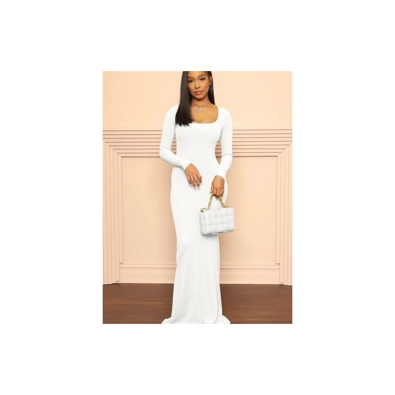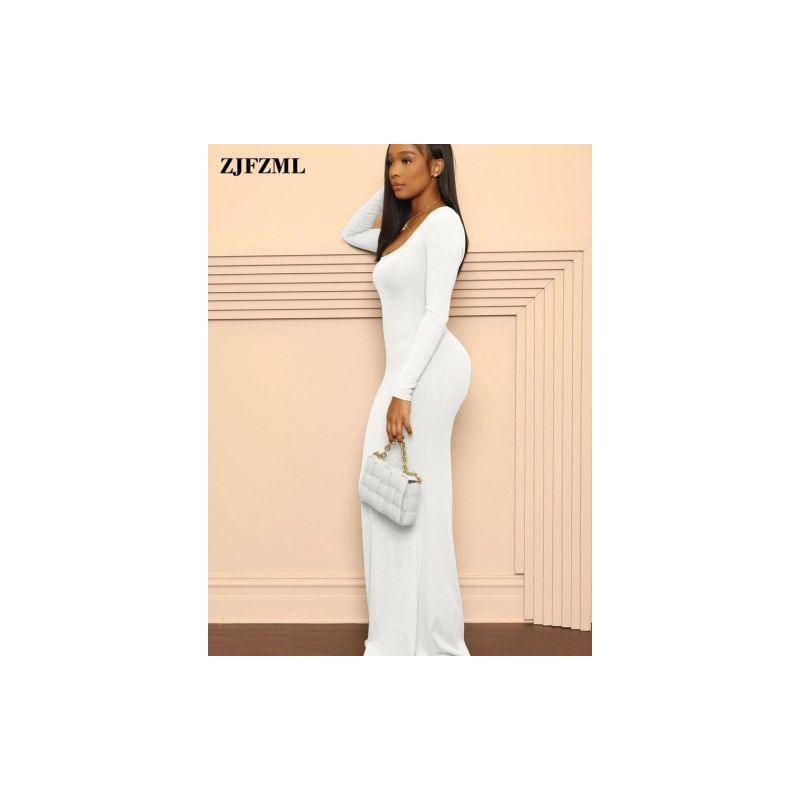 Lenyűgöző egyszínű alakformáló estélyi ruha női négyzet gallér hosszú ujjú koktélruha rugalmas bordás fitneszruha