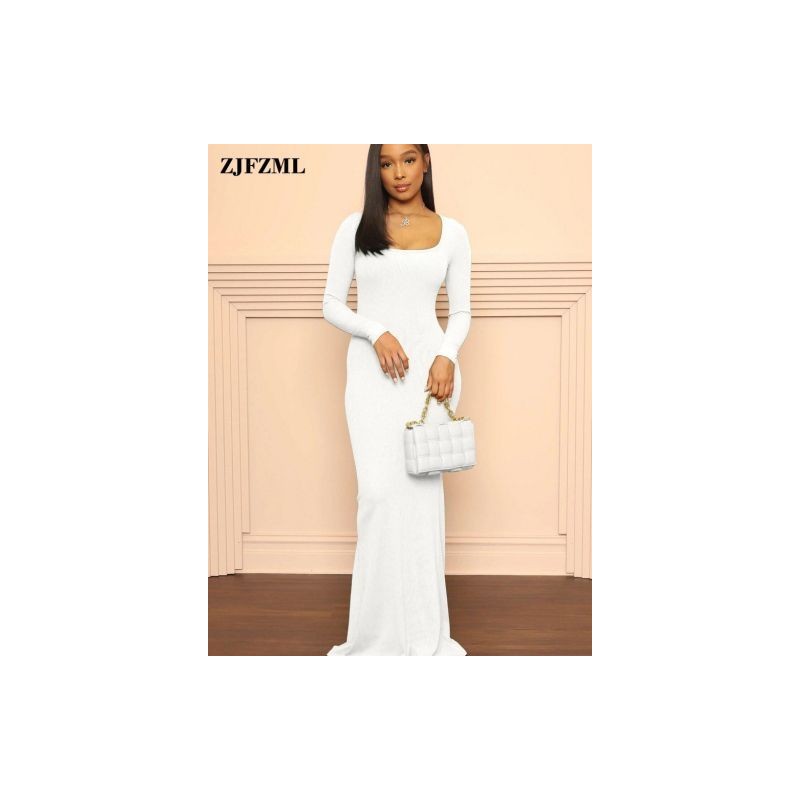Stunning Solid Color Body-shaping Evening Dress Woman Square Collar Long Sleeve Cocktail Dress Stretchy Ribbed Fitness Vestidos