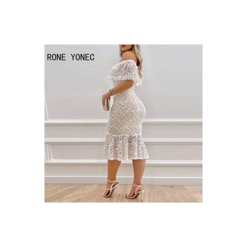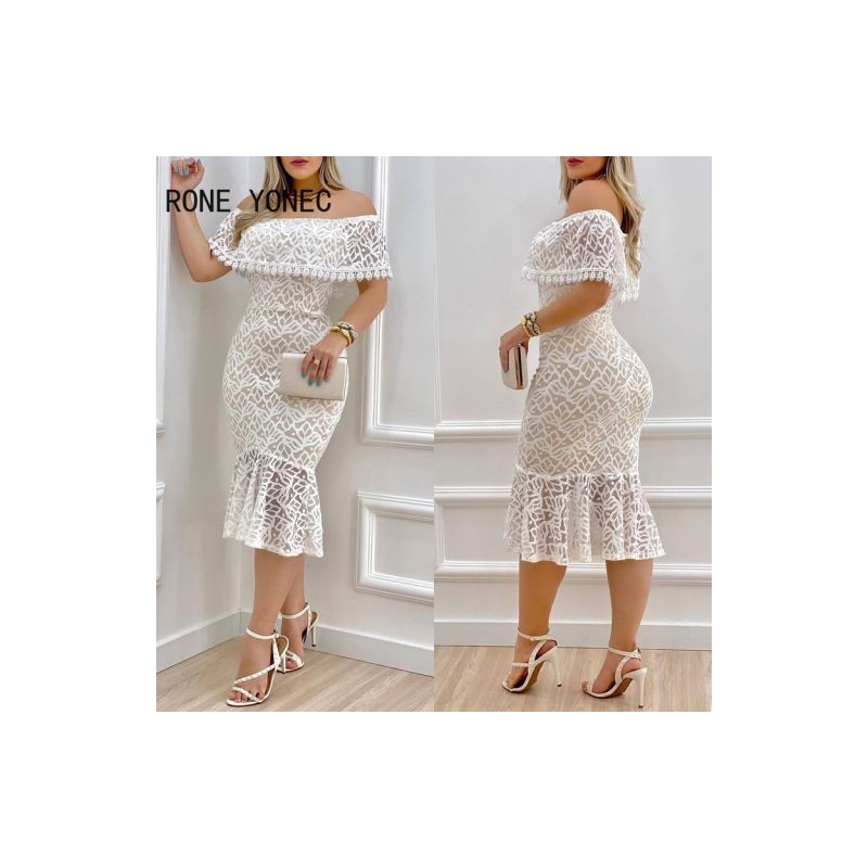 Women Solid Chic Off Shoulder Ruffle Hem Lace Hem Bodycon Sexy Formal Party Dress