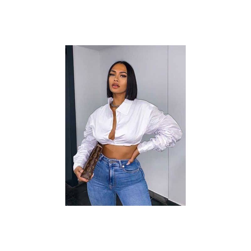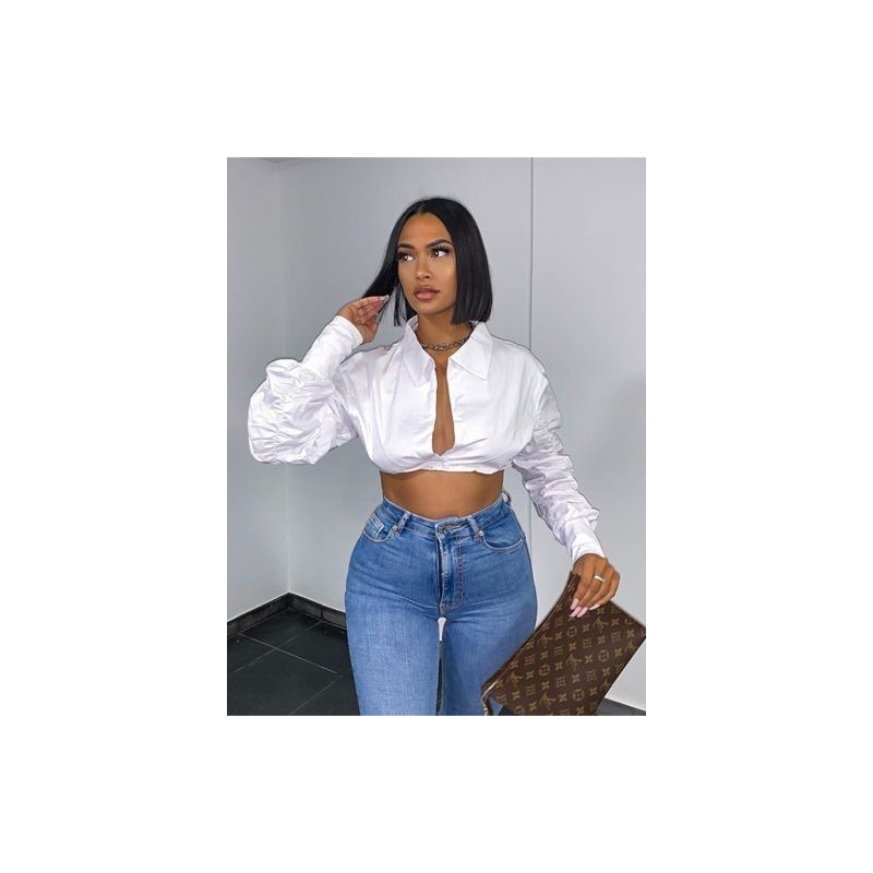 Akaily fehér, rövid női ing utcai viselet, V nyakú, gombos, felfújható ujjú felső női kauzális divatos nyári felsők, női, 2022