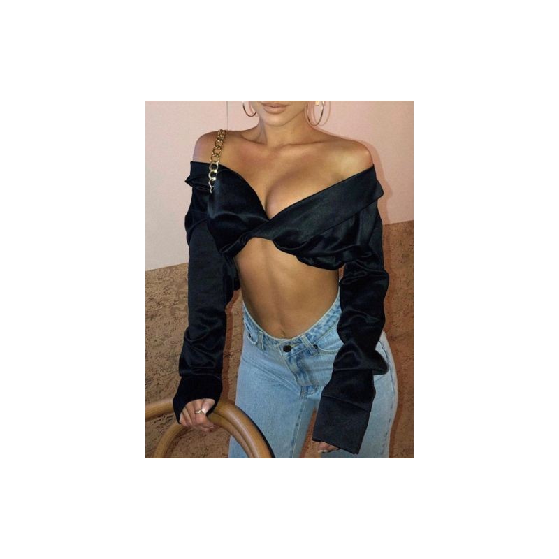 Akaily Summer Sexy White Tops Women 2022 Strapless Backless Long Sleeve Crop Top Female Hollow Out Bandage Black Party Tops