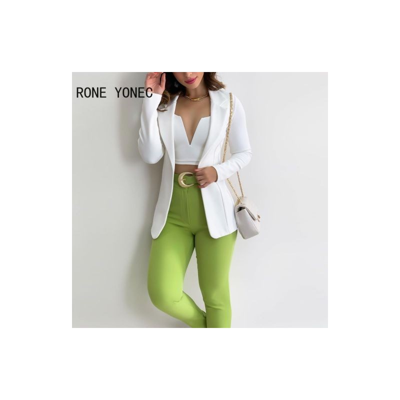 Női szolid szexi mély V nyakú Crop kardigán hosszú ujjú Bodycon fehér blézer szettek