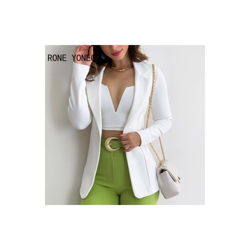 Women Solid Sexy Deep V Neck Crop Cardigan Long Sleeves Bodycon White Blazer Sets