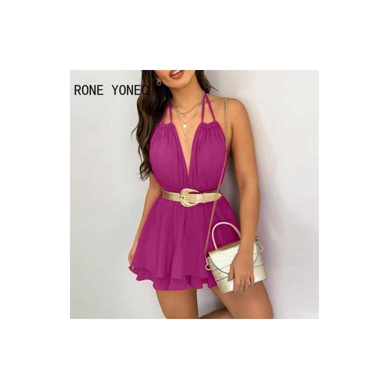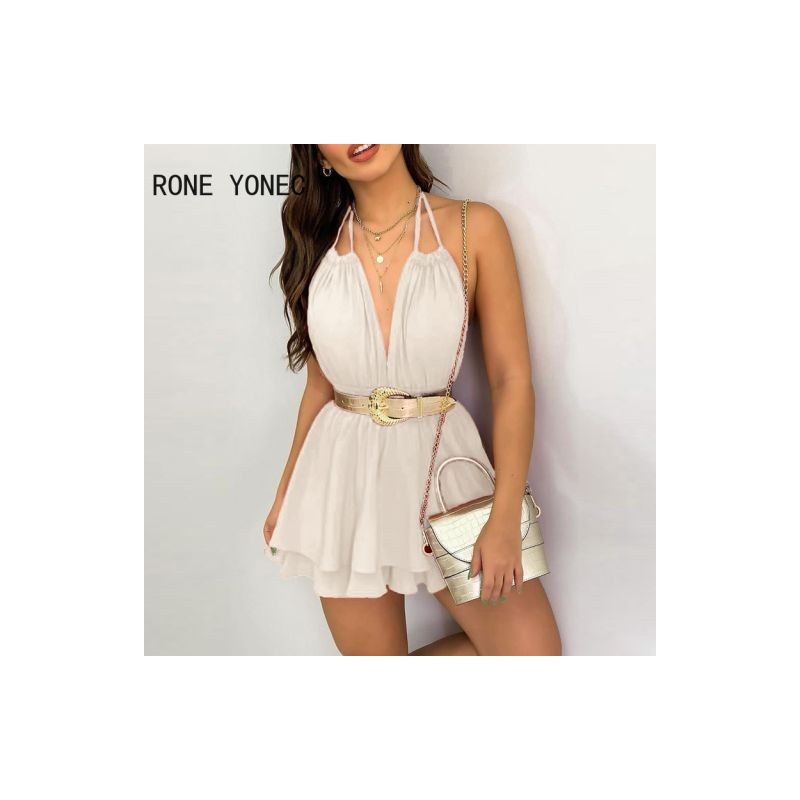 Elegáns női ruha Polkadot mintás fodros kötőfékes tankruha mini ruha nyári vakációs ruha