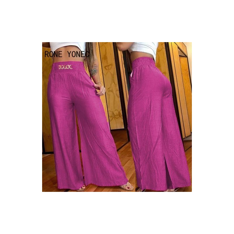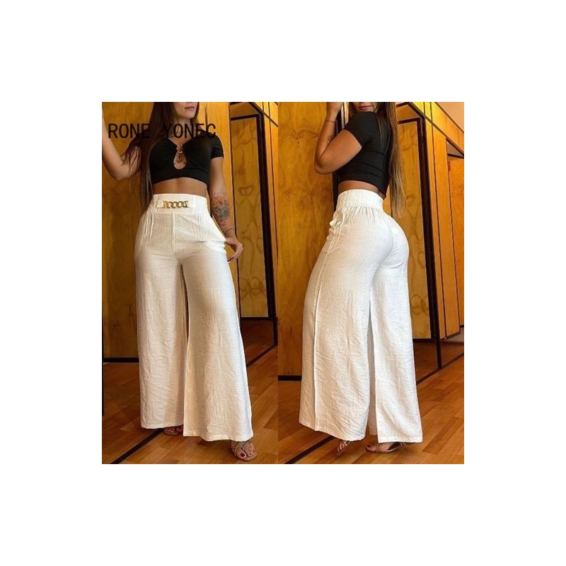 Női Elegáns Tömör Lánc Dekor Masszív Elasztikus Derék Munka Széles nadrág