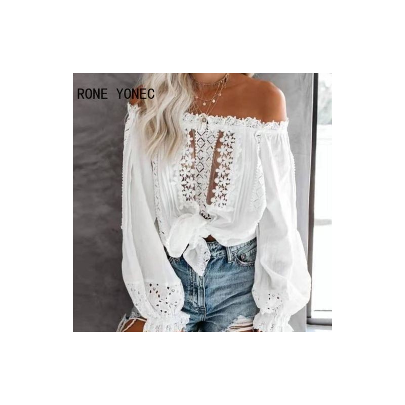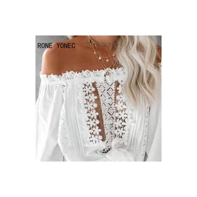 Women Shirt Elegant Off Shoulder Plain Lace Contrast Blouse Women Blouse Tops