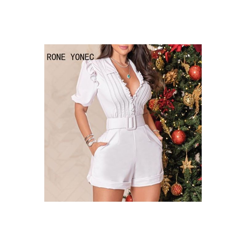 Women Short SleeveFrill Hem Pocket Design Short Sleeve Romper Casual Women Jumpsuits