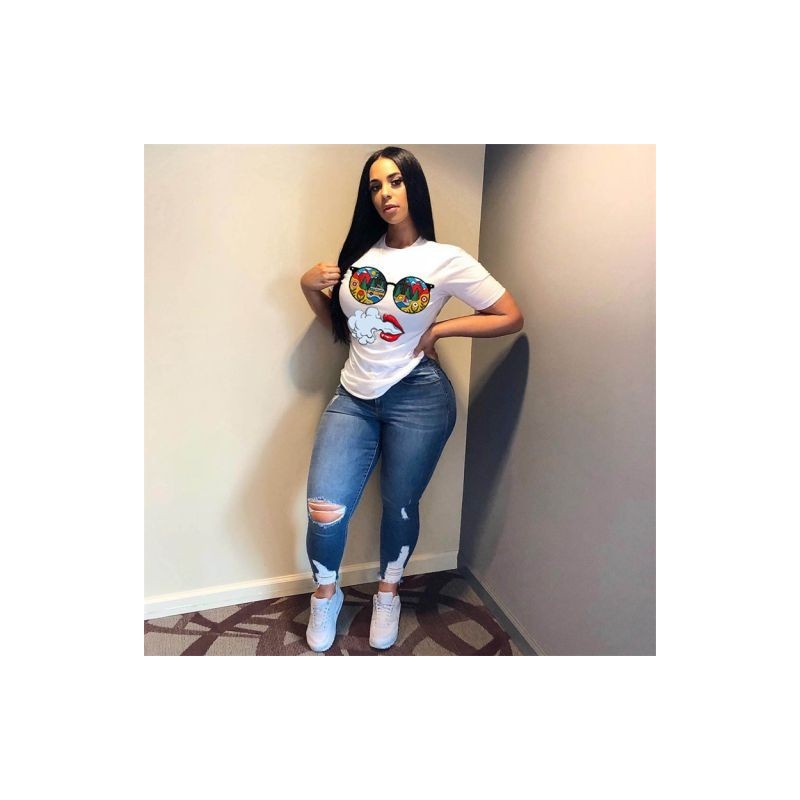 Akaily Summer Fashion Graphic T Shirts O Neck Short Sleeve Print Crop Top Women Streetwear Club Black White Blue Tops 2022