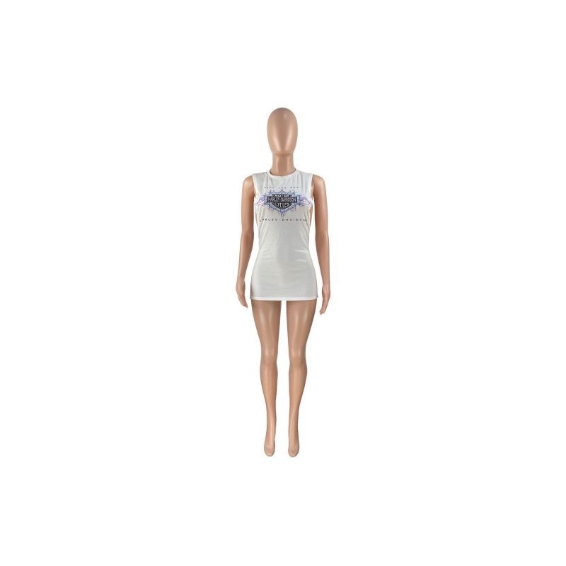 Akaily Summer Streetwear Loose Graphic T Shirts O Neck Sleeveless Zipper Print Tees Tops Women 2022 Split Club White Tops