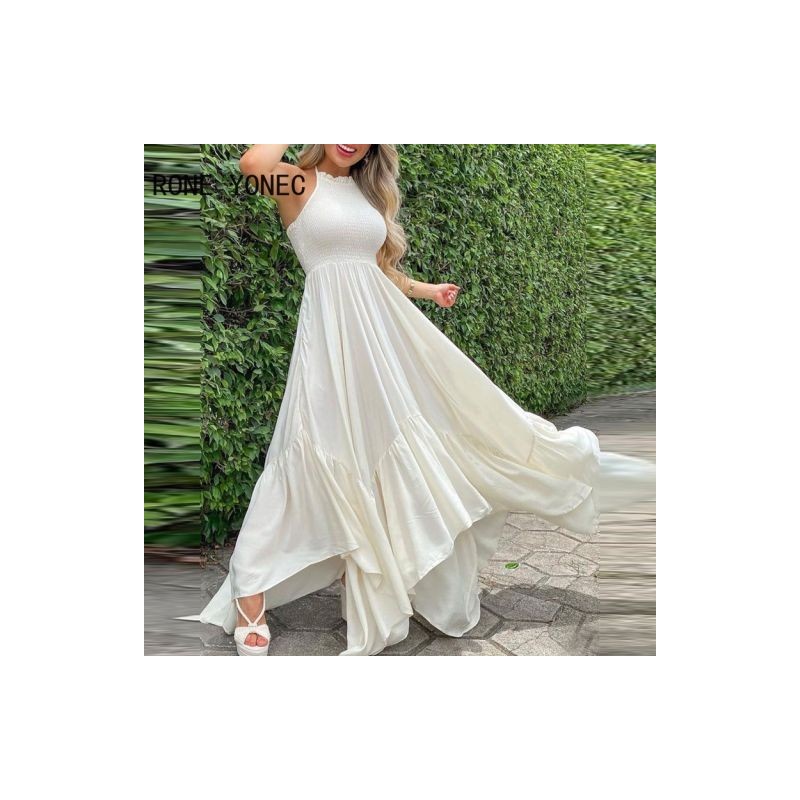 Elegáns női ruha sima ujjatlan, rovátkolt maxi ráncos ruha nyári ruha