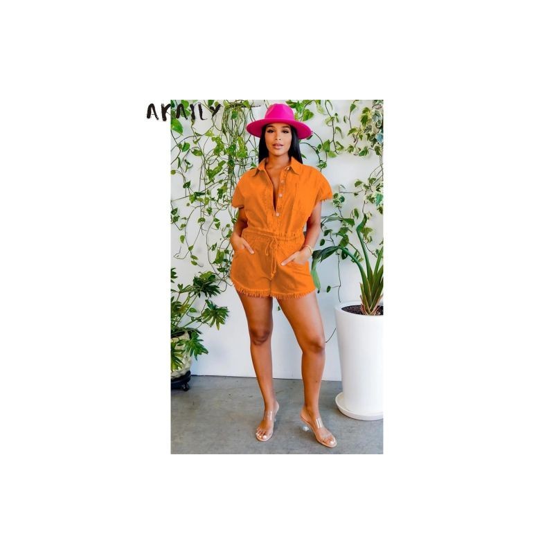 Akaily nyári bojt rózsaszín farmer 2 darab kétrészes női alkalmi ruhák 2022 fehér rövid ujjú ingek és rövidnadrág szettek női