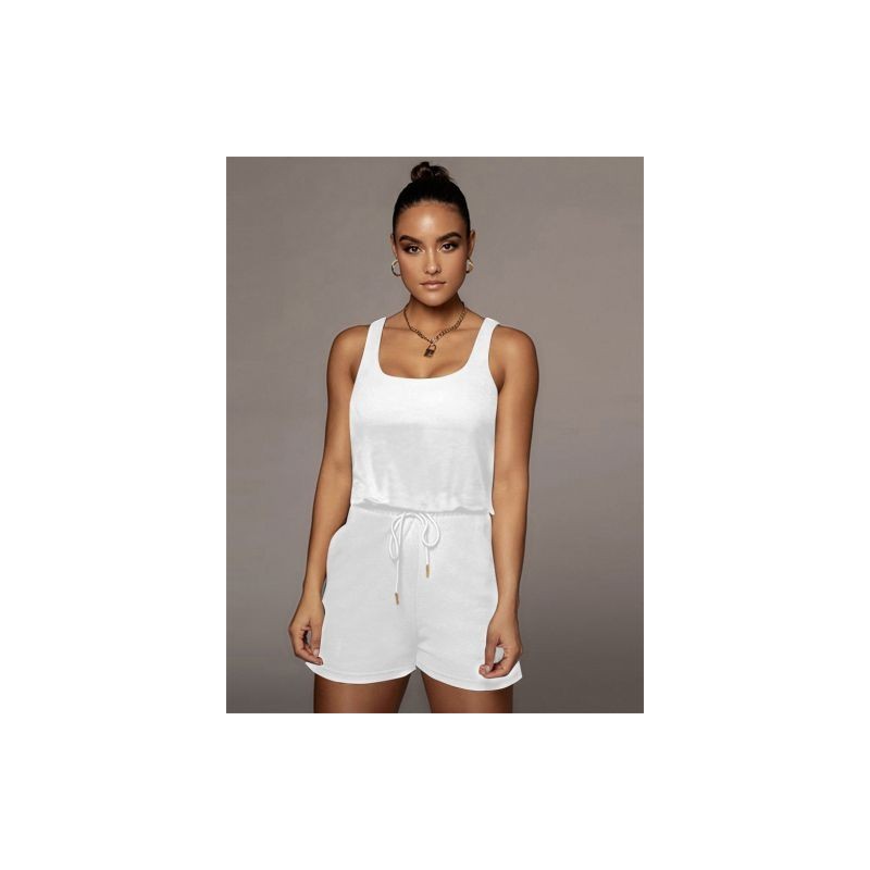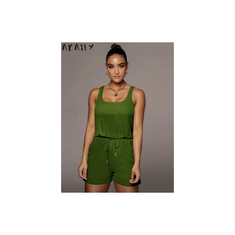 Akaily őszi fekete Jumpsuit Női Rövid One Piece Fitness Outfitek 2022 Fehér Ujjatlan Bandage Bodycon Rompers Playsuit
